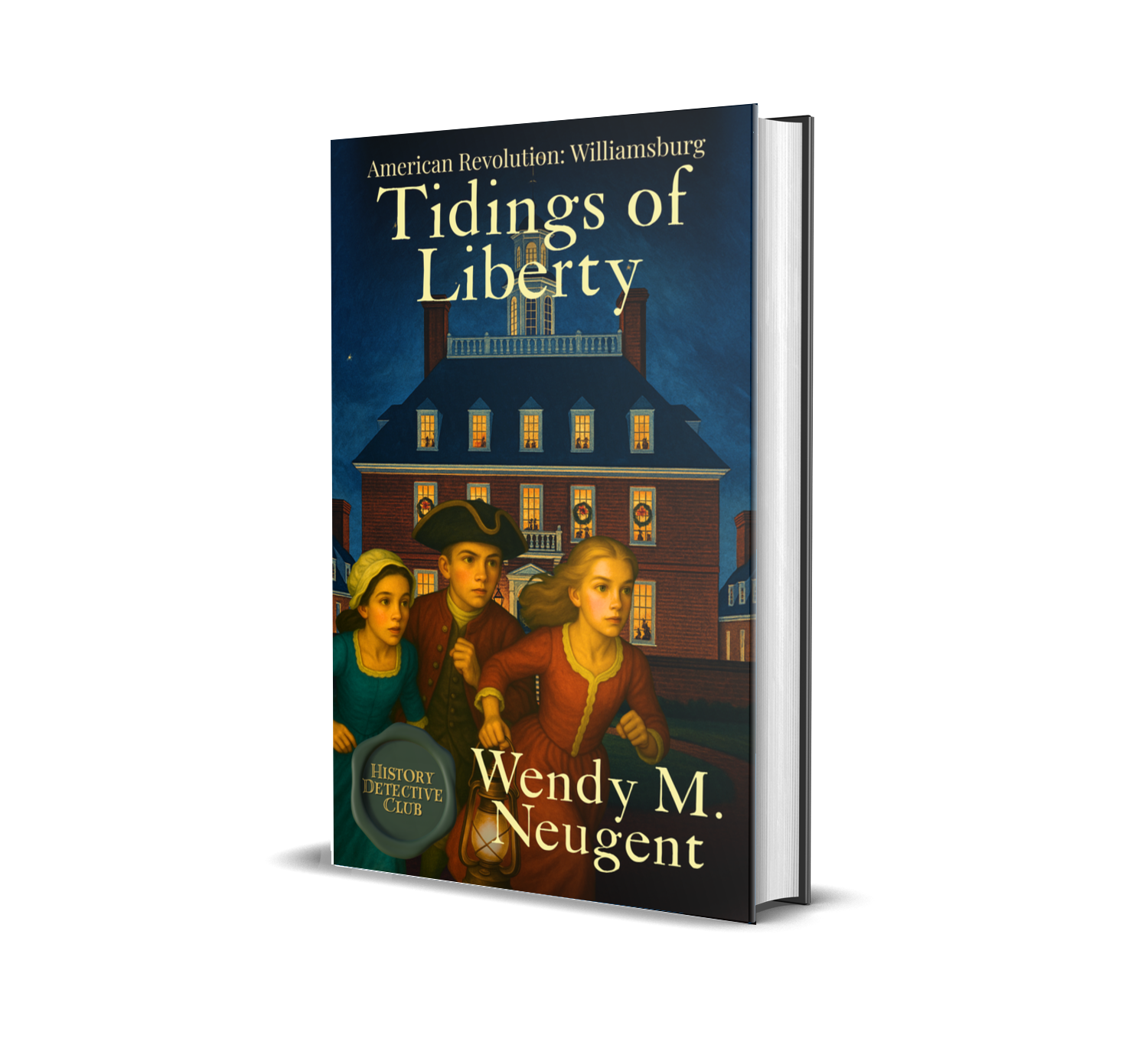 History Detective Club is historical fiction woven with time travel, real events, hidden letters, secret codes, and the living world of Revolutionary Virginia.